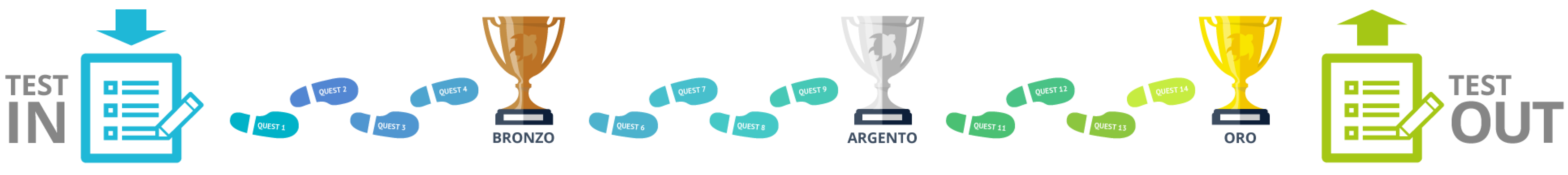 Per conseguire la prima medaglia, il Bronzo, ti allenerai con esercizi teorici e pratici per uno specifico periodo di tempo, normalmente una settimana lavorativa. Se sarai costante nell’allenamento, otterrai la tua prima certificazione: la competenza propedeutica. Avrai dimostrato, infatti, di avere padronanza sui principi e sui vantaggi pratici della MicroSkill che stai allenando.